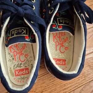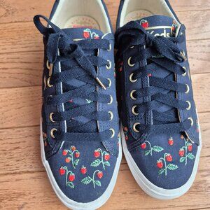 KEDS X RIFLE PAPER Co. Crew Kick Mini Strawberries Embroidered Sneaker In Navy 8