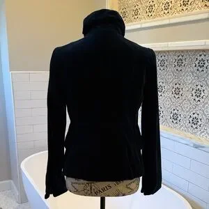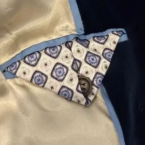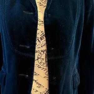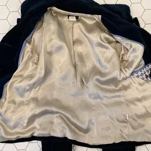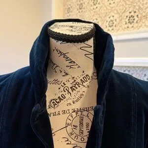 Sophisticated navy velvet blazer. Ideal for professional and evening wear. Adds elegance to any outfit.
