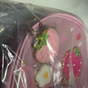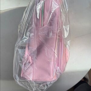 Adorable pink kids backpack with strawberry design and rainbow 🌈 colored zippers!