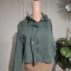 FABLETICS Cropped Hooded Jacket – Green | Lightweight Performance Layer. Small