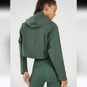 Fabletics, Cropped Jacket, Athleisure Jacket, Activewear Layer, Performance Jacket, Hooded Jacket, Green Athleisure, Gym Layer, Street Style Athleisure, Lightweight Jacket, Modern Activewear, Everyday Sport, Yoga Wear, Pilates Outfit, Casual Sport