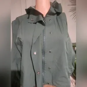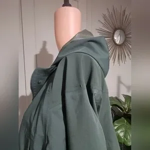 Features: Zip pockets, adjustable hem detail, hooded collar