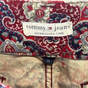 Womens 11 vintage Y2K Tommy Hilfiger paisley floral wide-leg corduroy jeans. Vibrant flare pants with intricate patterns. Offers a stylish and comfortable fit. Ideal for any occasion. 4 pockets. Cotton blend. Excellent condition.