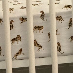 Charming crib sheet with playful tiger design. Adds a fun touch to any nursery.