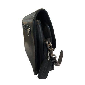 Light creasing on leather, minor wear on edges. Measurements: Width = 10.5", Depth = 2.75", Height = 7.5", Strap Drop = 8".
