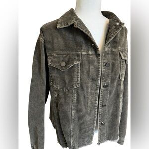 Women’s corduroy Jacket in a beautiful moss green. Very soft fabric and lightweight. Raw cut edging along the bottom of jacket. Not lined. Never worn, perfect condition.