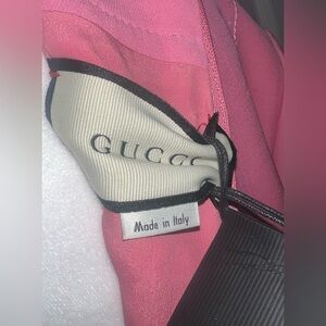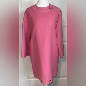 This Gucci dress is brand new with tags. It features a round neck, decorative buttons, a back zip fastening. The dress has cropped sleeves and a shift silhouette. The material is 54% silk/46% wool and is made in Italy.