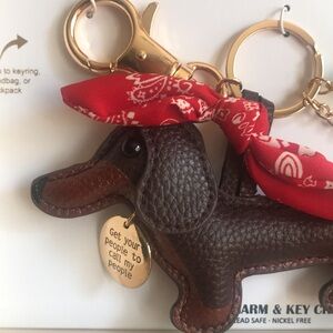 Piper•K Dachshund Keychain/Bag Charm Charming dachshund keychain with a red bandana, fuzzy tennis ball and a crystal dog bone. Perfect for dog lovers. Has a large lobster claw clasp. Dog and accessories are all double side.