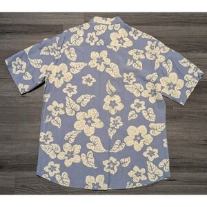 Tori Richard Honolulu Men's Blue White Floral Silk Linen Hawaiian Shirt Size L
