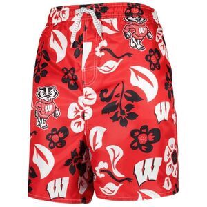 Wes & Willy Wisconsin Red and White Swim Shorts Size Large.