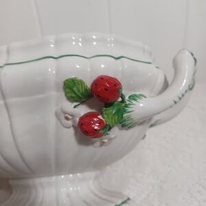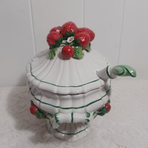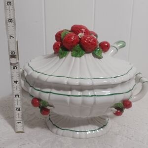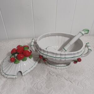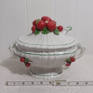 Vintage Italian Pottery Tureen with 3D strawberries, handpainted! Such a beautiful unique piece! 1950's-60's.