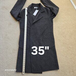 Very soft double-faced overcoat with open front. Original price was $398. Tags attached. No flaws, no damages, no issues to note. No pet hair. No odors.