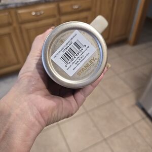 Stylish Stanley tumbler in gold with a convenient handle. Perfect for hydration on the go.