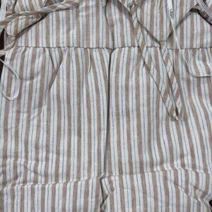 NWT Lulus Beauty at the Beach Tan Striped Tiered Tassel Maxi Dress