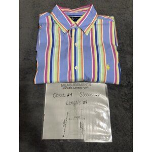 This Ralph Lauren button-down shirt offers a blend of style and comfort. Its classic fit and vibrant stripes make it a versatile wardrobe addition.