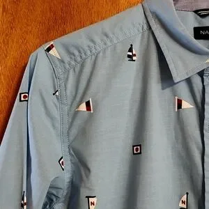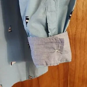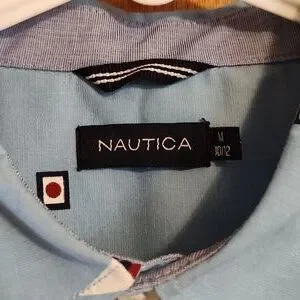 NWOT Nautica Boys Button Down Shirt Blue Sailboat Print Cotton Blend M 10/12