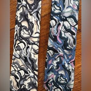 Set of two abstract patterned ties. One features black and cream swirls, the other has blue and pink accents. Vintage J. Garcia. Excellent condition.