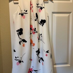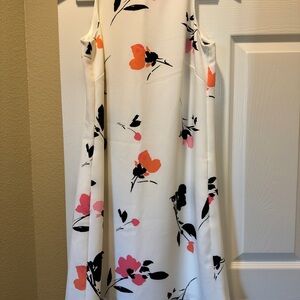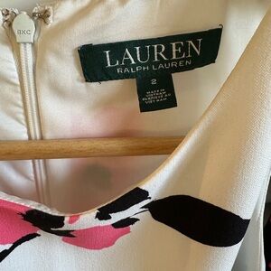 Chic Lauren Ralph Lauren midi dress with a floral design. Features a white base with black, pink, and orange flowers. Ideal for stylish outings. Brand new with tag still on.