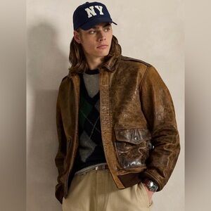 Vintage Mirage Brown Aviator Bomber Leather Jacket- Size M