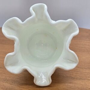 Vintage Milk Glass Hobnail Ruffled Vase Fenton Small Accent Decor