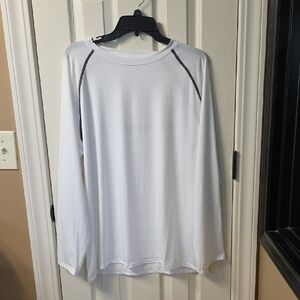 Stylish white long sleeve shirt featuring black accents. Perfect for casual wear.