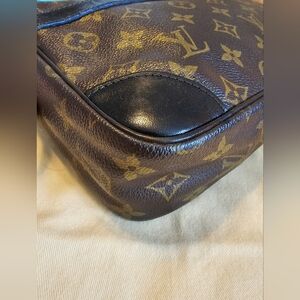 Some wear inside pockets but not visible just looking at the interior. This is normal wear for a vintage piece. Monogram is still very vibrant. No cracking or peeling on exterior or interior. Vachette dyed black and sealed. WILL NOT PEEL like paint. This is permanently dyed.