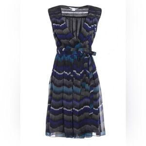 Diane Von Furstenberg Blue and Black Midi Dress