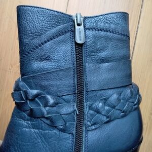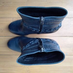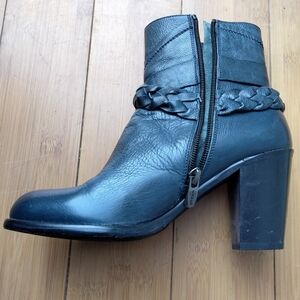 Kemal Tanca Blue Genuine Leather Heeled Booties w/ Braided strap detail and side zipper.