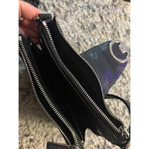 Michael Kors Crossbody Black Fulton Shoulder Bag Organizer Purse black Double Zip Snap. Measures approximately 7.5" x 6.5".
