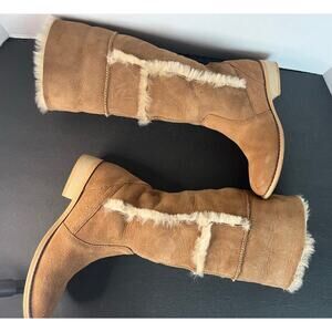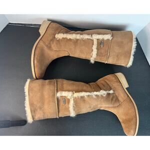 EMU Calandra Waterproof Brown Sheepskin Leather Shearling Knee High Boots Sz 8