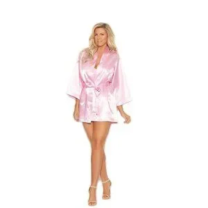 🆕 Baby Pink Charmeuse Kimono Robe Plus Size Silky Wrap