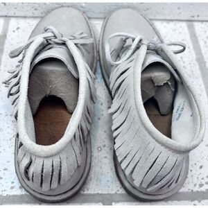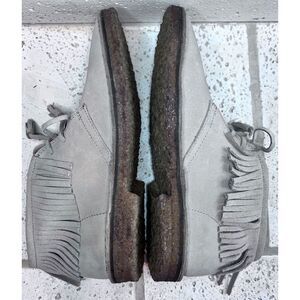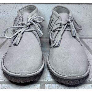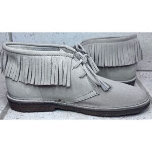 J Crew Fringed Macalister Suede Boot Shoe Tassel Laces Grey Tan Size 9 NWOB Great looking suede ankle high, lace up (with tassels), two eyelet boots. Goes with jeans or shorts. Padded inner soles. Color: