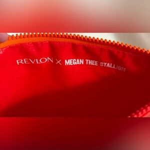 Orange and red REVLON x MEGAN THREE STALLION COLAB Cosmetic bag with goodies