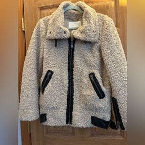 Unique Zara Woman outerwear. The body is faux shearling. It features sheep leather accents. Ideal for winter. Very soft and warm. Excellent condition.