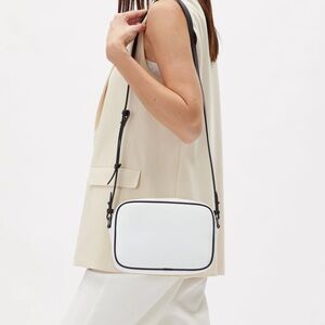Elevate your style with this sleek white crossbody bag. Perfect for any occasion, it features an adjustable strap for ultimate comfort.
