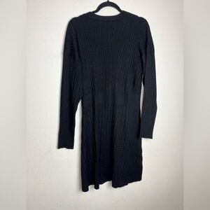 Chic black sweater dress with long sleeves, featuring a textured knit design.