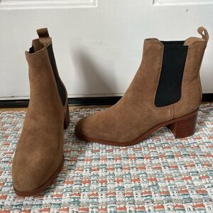 Chic and versatile ankle boots. Soft suede material. Ideal for casual or dressy looks. Only tried them on, haven’t been worn outside!
