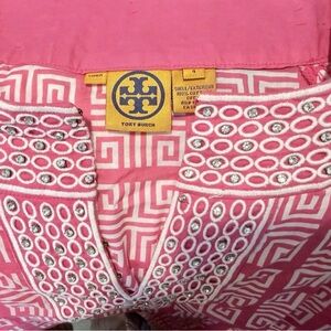 Tory Burch Tunic Top Fuchsia Pink & White With Silver Rhinestones Size 4 Cotton