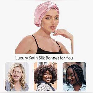 Say goodbye to restless nights and morning hair woes with our adjustable Satin sleeping bonnet. Our unique design ensures a comfortable and secure fit, Made from soft and gentle materials, it won't slip down or leave any marks on your face while you sleep.