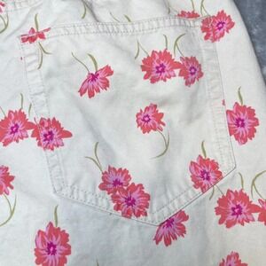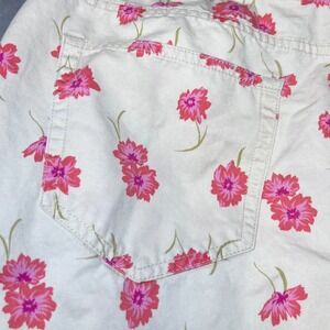 Liz Claiborne Floral Print Pants Womens 12 Cream with Pink Flowers Casual Boho