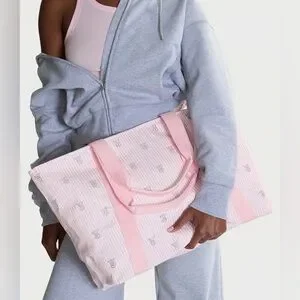 Victoria's Secret Light Pink Tote with Stripes