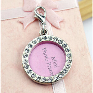 Lot of 50! 1" Crystal Rhinestone Round Mini Photo Picture Frame Charms w/ Clasp