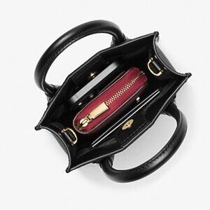 Our scaled-down Mercer crossbody bag will enable you to travel light and while staying stylish. Made from pebbled leather with smooth accents, this handbag features structured top handles and an adjustable shoulder strap for added versatility. We love how it will safely hold just the essentials.