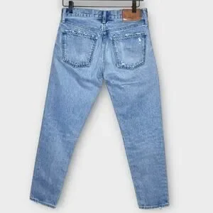 MOUSSY VINTAGE Lewton Rigid Denim button fly distressed tapered jeans size 25