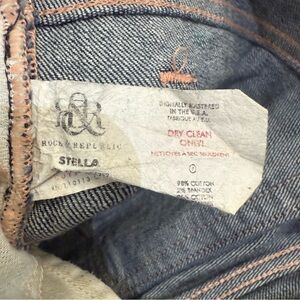 EUC. Dark wash denim in great condition with light natural wear. Rock & Republic Stella women’s jeans featuring a classic 5-pocket design, subtle back pocket stitching detail, and a comfortable mid-rise fit. Durable denim with a flattering silhouette and everyday wearability.