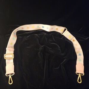 Limited edition stylish Stoney Clover Ln Park & Beach travel duffle bag. Gorgeous pink velour with multicolor star design. With included detachable shoulder strap. Full length gold metal zipper closure. Approximate dimensions are 24 inches long by 12 inches tall and 8 inches wide. The strap is adjustable and is 38 inches long as shown in the photos. A few photos inlude measurements. The duffle bag collapses down flat when empty as shown in the photos. New unused condition and smoke free. Feel free to ask any questions.