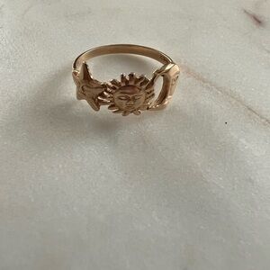 14K Gold ring featuring a star, sun and moon design. Size 5. No major scratches or damage. From my personal collection (no longer fits). Perfect for adding a celestial touch to your ring stack. Stamped with 14K (see pic). Will ship out within one day. Feel free to ask any questions.