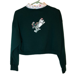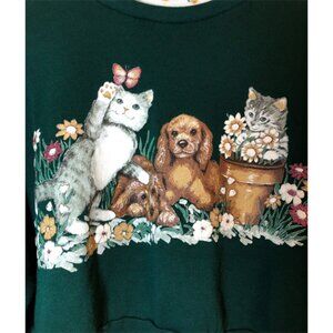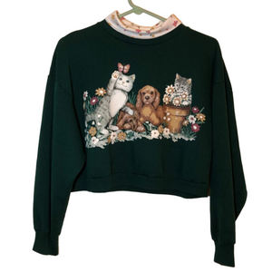 Vintage upcycled mock neck crop sweatshirt kitties and puppies kawaii sz S