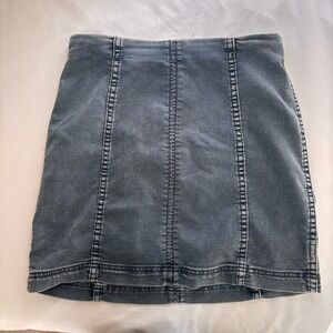 Free People Stretch Denim mini Skirt Medium Wash Size 6 Festival Boho Girly