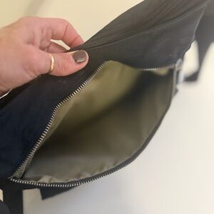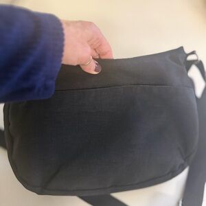 Elegant black crossbody bag by Baggallini. Features silver hardware and secure zip pockets. Ideal for daily use.